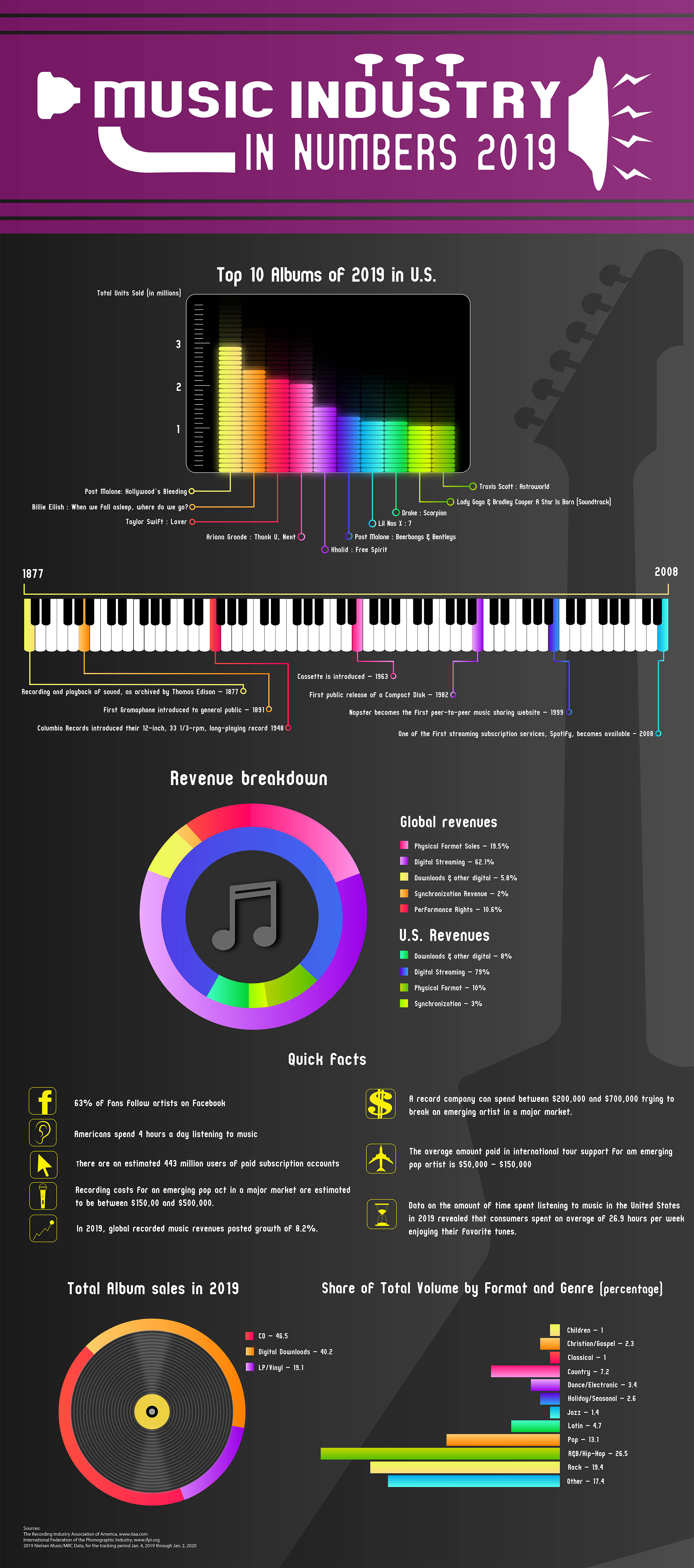 The other part of this project is the way it uses thematic visual elements to create a unified tone. The musical theme gives the veiwer an immediate understanding about what the infographic is about without any reading.